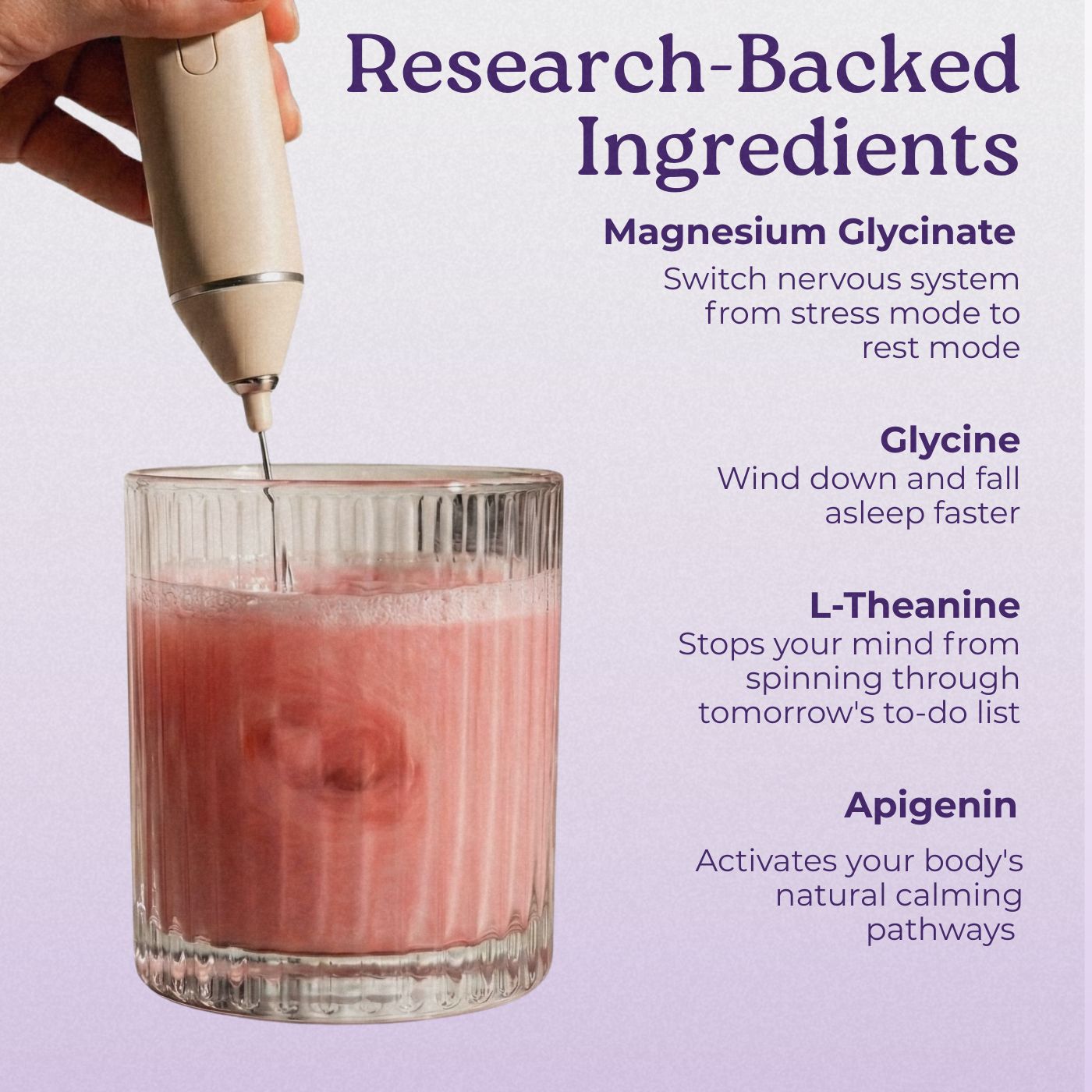 Helps you fall asleep and stay asleep. No more waking up at 2AM with your brain racing.